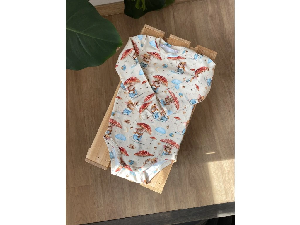 Body je dostupné s dlouhým rukávem doplněné o rostoucí náplet, takže vydrží miminku déle.