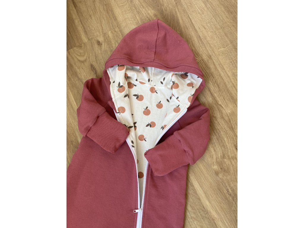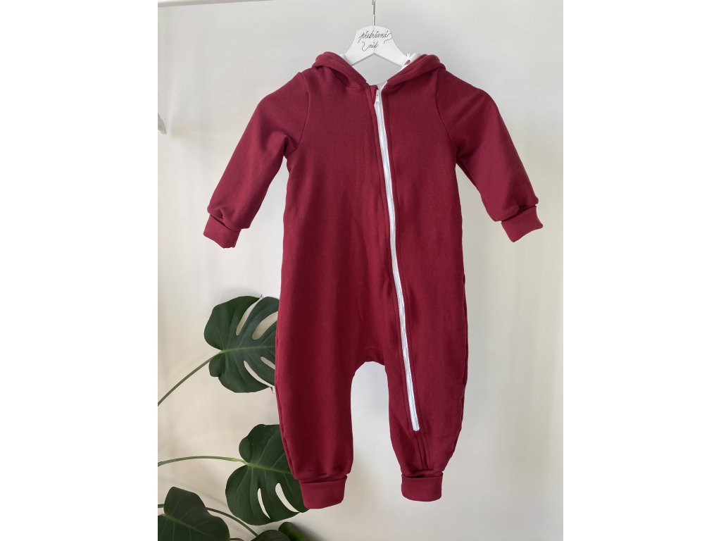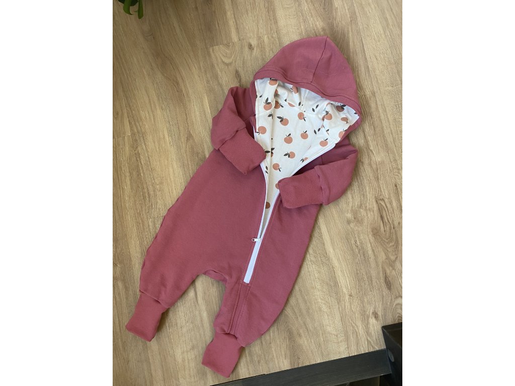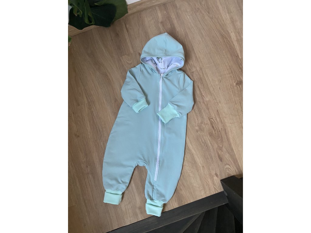 Vnější strana overalu je ušitá z teplákoviny, vnitřní poté z bavlněného úpletu. Výhodou overalu jsou rostoucí náplety, díky kterým jej budou moci děti nosit déle (v případě potřeby je možné udělat náplety na ručičkách s možností schovaní ručiček).